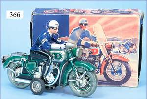 TIPP & CO 599 Polizeimotorrad, Blech lithogr., Friktionsantrieb, 28,5 cm, Orig.-Scheibe gebrochen. Sonst guter - sehr guter Zust.