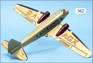 METTOY Düsenflugzeug, Blech lithogr., 37 cm, Uhrwerkantrieb intakt, schöner Orig.-Zust., mit kl. Spielspuren