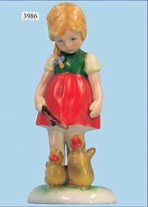 GOEBEL Hummel, 1955, KÄTHE KRUSE Deutsches Kind, mit 2 Enten, Porzellan glasiert, 15 cm, selten