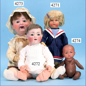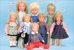 HEUBACH 7246, 60 cm, blaue Schlafaugen, geschl. Mund, einfacher Gliederkörper, mit langen Oberschenkeln, Echthaarperücke
