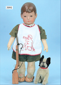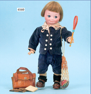 KÄTHE KRUSE Junge, Friedebald, 36 cm, Stoffkopf, Hinterkopfnaht erst unter der Perücke sichtbar, Farbabweichung am Stoff des Kragens, Lackierung möglicherweise 1x bei KÄTHE KRUSE erneuert, sehr gute Arbeit