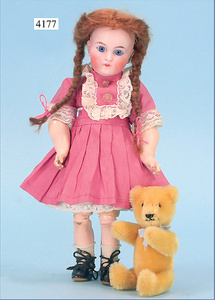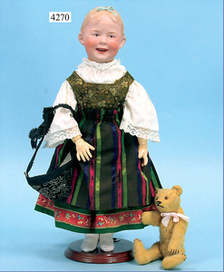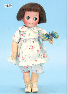 BAEHR & PROESCHILD 2033 BSW im Herz 537, Charakterpuppe, Wendy, 48 cm, blaue Schlafaugen, geschl. Mund, durchst. Ohren, Kinngrübchen, Gliederkörper, Arme nicht passend zum Körper, Perücke etwas zu groß, schönes helles Porzellan, feine Bemalung, ausdrucksstark