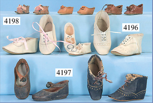 Konv. Kinder- u. Puppenschuhe, 7 - 12 cm, 3 Paar, ca. 1910, 2 Paar jünger