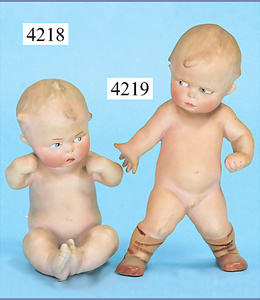 KLEY & HAHN 525, Biskuitporzellan-Charakterpuppe, 30 cm, Vollkopf, braune Schlafaugen, liegen lose bei, off./geschl. Mund, Ganzbiskuitbabykörper, Kopf sitzt nicht ganz in der Halspfanne