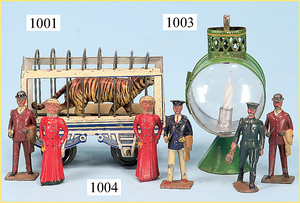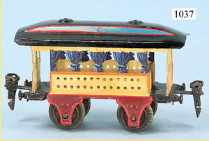 J A J, Made in Germany, Raubtierwagen, Blech lithogr., 9,5 cm, mit Tiger, Spur 0, guter Zust., selten