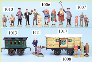PFEIFFER, 3 Teile Figuren, Masse, 4 - 4,5 cm, Bahnpersonal, Reisender, Kind mit Hut, Zust. 2 - 3