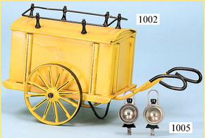 Handwagen, Blech handlackiert, Gussspeichenräder, 23 cm, 1 Lötstelle an oberer Stange lose, kl. Stellen farblich ausgebessert, sonst gut