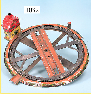 CARETTE, Drehscheibe, Spur 0, Haus lithogr. u. Drehscheibe handlackiert, , Durchmesser 54 cm, Uhrwerk intakt, bespielter Zust.,