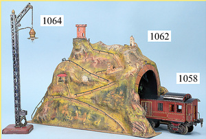 MÄRKLIN, Uralt, gr. Tunnel, Spur I, 51 cm lang, Orig.-Burgaufbau vorhanden, seitlich angelegte Fußwege, Rückseite kl. Burgruine, guter Zust.