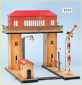 KIBRI, Bahnwärterhäuschen mit Übergang u. Stellwerk, mit 2 x Schranken, 1 x Signal, 1 x Lampe, 1 x Schaffnerhäuschen, sehr guter Zust.