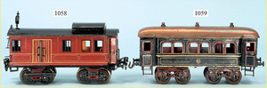 MÄRKLIN, 2 Teile, Spur 1, Abteilwagen, 3. Klasse, sowie 1 Postwagen, 22 cm, bespielt, Lackfehler