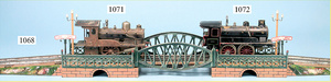 MÄRKLIN, Uralt, Brücke, 3-teilig, Spur 1, 145 cm, Blech handlackiert, grün, mit 2 x Steigungsschilder u. 2 x Telegraphenmasten, sehr schöner Orig.-Zust.