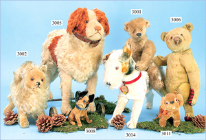 STEIFF, Foxterrier, um 1940, Stehhöhe 24 cm, mit Knopf, minim. Reste der weißen Fahne u. Schild, Mohairplüsch, ein wenig Füllverlust, sonst guter Zust.