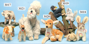 STEIFF, Konv. 2 Hunde, 1x STEIFF Schäferhund, mit Knopf, um 1965, 18 cm Stehhöhe, guter Zust., 1x Pudel, grau, 5-fach gegliedert, mit Knopf, Reste der gelben Fahne, Druckstimme defekt, Stehhöhe 42 cm, guter Zust.