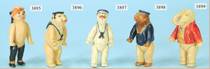 außergewöhnliche Celluloidfigur, Elefant, 11,5 cm hoch, bewegl. Arme u. Beine, anmodellierte Kleidung, handlackiert, früh, guter Zust., selten