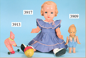 SCHILDKRÖT, farbige Puppe, 1930, Kopfmarkierung 30, Körper 35, Celluloid, Orig.-Bastrock, guter Zust.