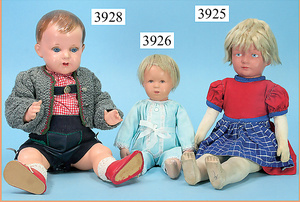 KÄTHE KRUSE, Brustblattkopf-Puppe, Friedebald, 1928, 52 cm, Stoff-Brustblattkopf, 3 Hinterkopfnähte, Knie übernäht, sehr schöne Bemalung, eine Hand etwas berieben, sonst schöner Orig.-Zust., selten