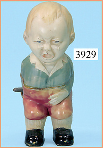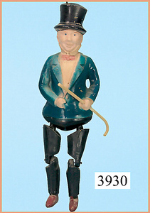 außergewöhnl. Celluloidfigur, Hund, 11,5 cm hoch, bewegl. Arme u. Beine, früh, anmodellierte Kleidung, handlackiert, guter Zust.