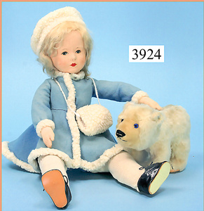 LENCI, Filzpuppe, Italien, 1921-1925, 54 cm, Stoffkopf, seitl. blickende gemalte Augen, gelockte Mohairperücke, Stoffkörper, Orig.-Filzkleidung, guter Zust.