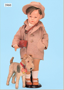 SCHILDKRÖT, Hans, Celluloid, Kurbelkopf, helle modellierte Haare, braune fest eingesetzte Glasaugen, 45 cm, unbespielt, Orig.-Schildkröt-Kart. einer Inge, kl. Farbabplatzer seitl., sonst sehr schöner Orig.-Zust.