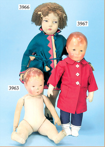 KÄTHE KRUSE, Puppe Nr. ICH, 45 cm, Stoffkopf, 3 Hinterkopfnähte, schmale Hüfte, auf der Stirn etwas ausgebessert, Finger berieben, sonst guter Zust.