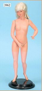 KÄTHE KRUSE, Schaufensterpuppe, Deutsches Kind, Mädchen, 83 cm, Magnesitkopf, gemalte Augen, aufgesetzte Wimpern, Orig.-Perücke mit Druckknöpfen, Oberschicht der Bemalung teilw. etwas abgewaschen, Orig.-Bemalung, Trikotkörper, schöne Gr.
