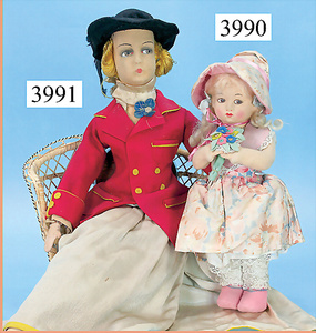 Sofa-Puppe, wohl LENCI, 43 cm, Pappmaché-Gesicht, seitl. Blickende Augen, geschl. Mund, Filz-Körper, Orig.-Kleidung, Filz-Hut, sehr guter Zust.