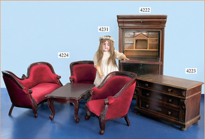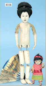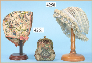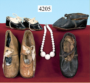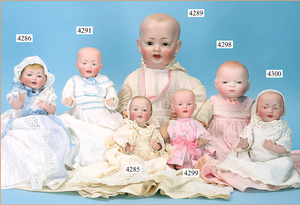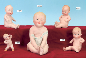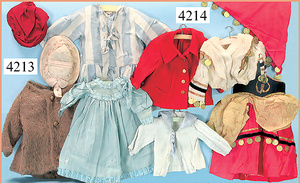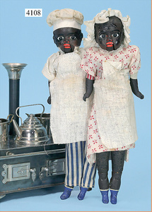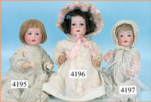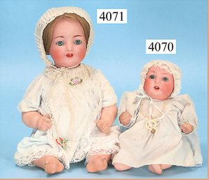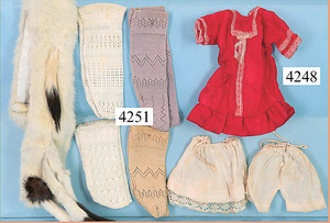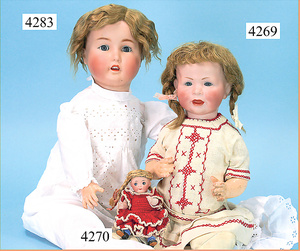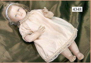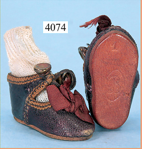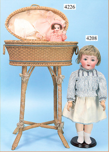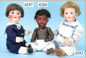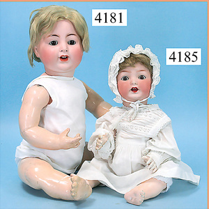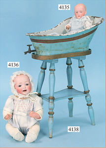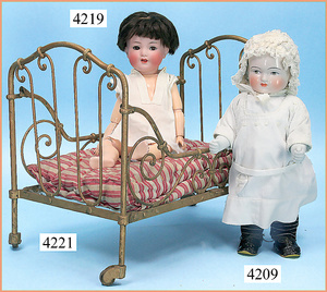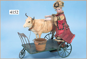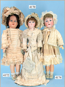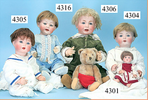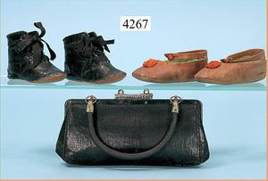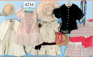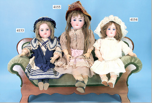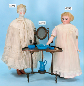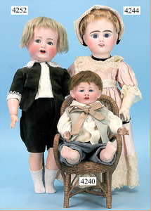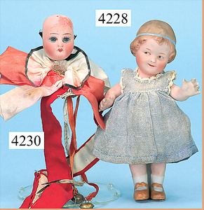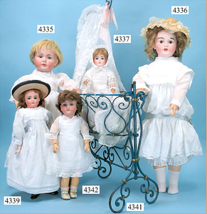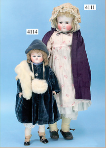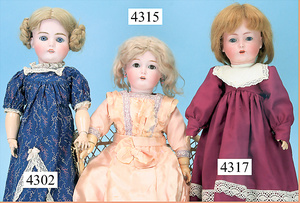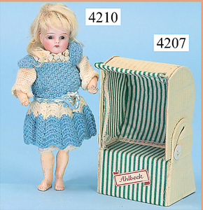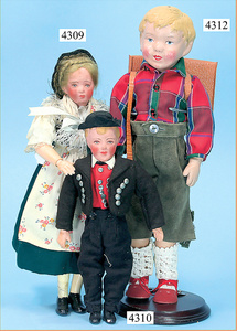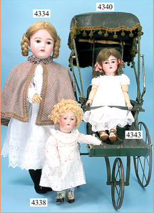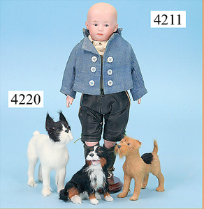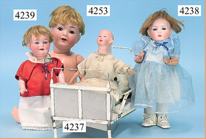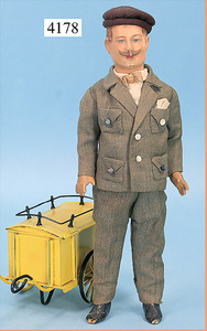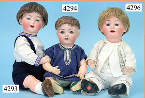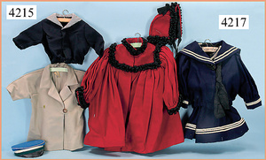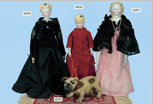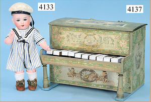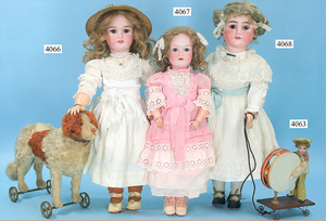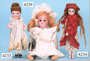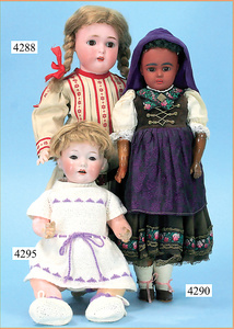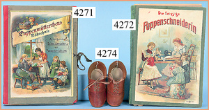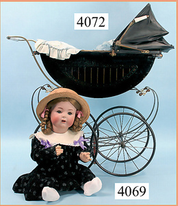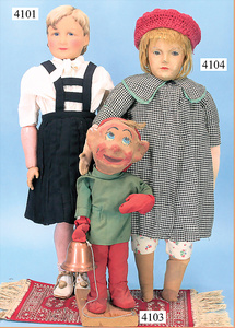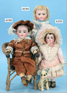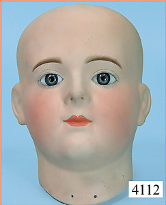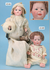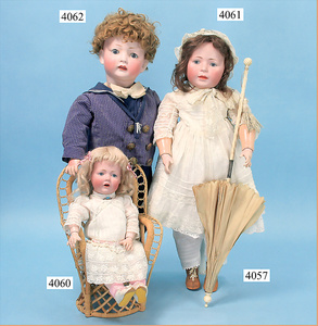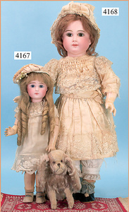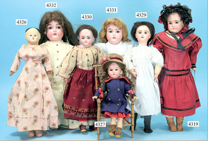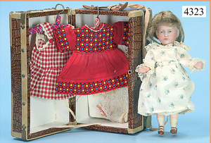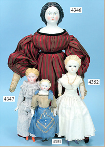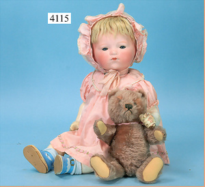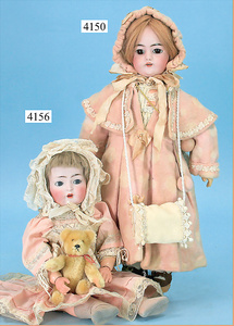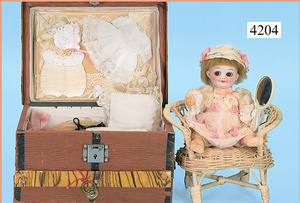STEINER, Biskuitporzellankopf-Puppe, Figure 9, Paris, 42 cm, gepresster Biskuitkurbelkopf, um 1885/90, blaue fest eingesetzte Glasaugen, geschl. Mund, durchst. Ohren, Orig.-Spiralfederaufzug, franz. Gliederkörper, Körper mit Zugstimme, feste Handgelenke, Papiermaché-Kopfdeckel, Echthaarperücke, alte Kleidung, Hut aus alten Stoffen genäht, Sohle an 1 Schuh fehlt