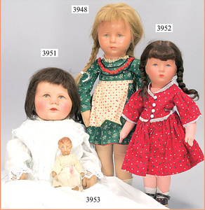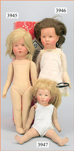 KÄTHE KRUSE, Du Mein, 48 cm, fabric head, loosely sewed on arms and legs, separate sewed on thumb, dark wig ( rare ), slightly worned at the nose, small worned places in face, body in very good condition, absolutely rare with this exceptional body