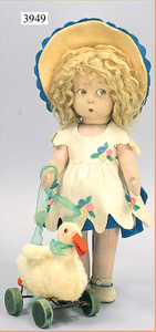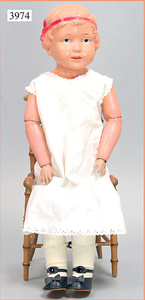 SCHILDKRÖT, "Bärbel", celluloid, sun tan, 45 cm, socket head, fix inset blue glass eyes, light colored modelled hair, good condition