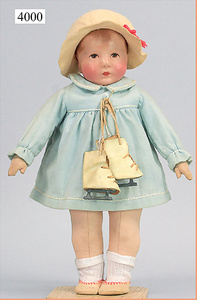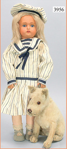 SCHILDKRÖT, Hans, "Tortulon", 45 cm, socket head, blue glass eyes, modelled hair, rare, without damage, original clothes with chest label