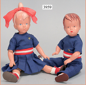 SCHILDKRÖT, Sternchen and Schnuppe, "Tortulon", boy, used, good condition, with color is wear down at the hair, original clothes, original celluloid shoes, girl, used, good condition