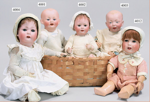 HEUBACH, Heubach in square 8774, head with flange neck, looking to the side, Intaglio eyes, pointed whistling mouth, fine modelled ears, modelled hair, fabric body, mass hands, rare
