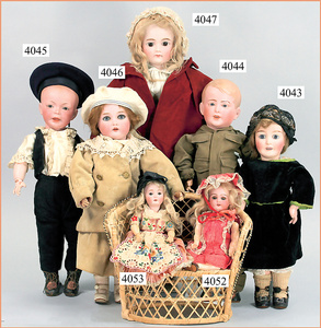 S & H, 1039, with red stamp lashes are trademarked, 49 cm, socket head, blue sleepy eyes, with lashes, opened mouth, upper teeth, dimple at chin, pierced ears, French jointed body, old mohair wig, old clothes, pull voice is intact, hands with flaked off parts (caused on production), forearms were partially painted over