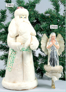 Santa Claus with paper lantern, cotton wool, partially with glimmer, face is made of lithographed wafer, 13 cm, nice condition