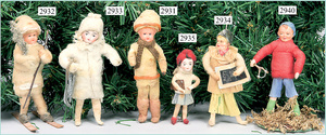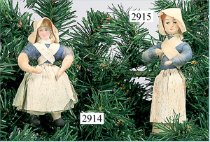 Dutch girl, cotton wool, face is made of lithographed wafers, dress is made ofrepe, headpiece is made of paper, 10.5 cm, nice condition