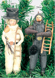 female chimney sweeper, cotton wool, face is made of lithographed wafer, ladder is made of Dresden cardboard, 13.5 cm, even good condition