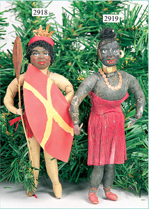 female Negro, cotton wool, face is made of mass, dress is made of crepe, chain and earring are made of Dresden cardboard, 14 cm, good condition