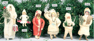 Santa Claus with bag of presents, cotton wool, face is made of lithographed wafers, 11 cm, very nice condition