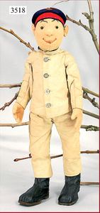 STEIFF, infantryman, German soldier , 43 cm, 1911-1915, felt jointed, drillich suit, felt cap is more recent, with button, without cloth tag label, shoe button eyes, black boots nailed with 45 original STEIFF buttons, small flaws on the right hand, very nice strong expression