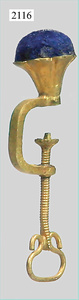 table holder with pin-cushion, gilded brass/tin, 4 cm, rare