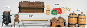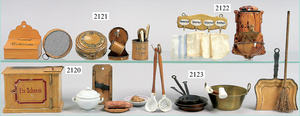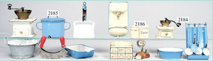 accessories for a doll kitchen, box for shoe polish things, 7 cm, bread box, 7 cm in diameter, 1 sieve, 1 cutlery bucket, 1 wall holder with jug