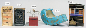 dollhouse stove, handpainted tin, good condition, 1 coal container, 1 baking tray, with scratches on the paintwork
