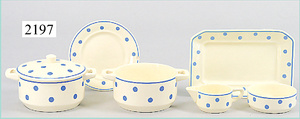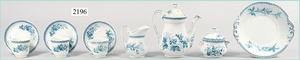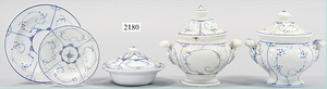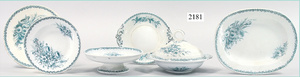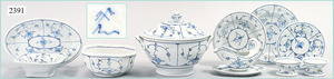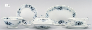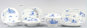 VILLEROY & BOCH, VALLERFANGEN, doll's dinner service, blue decor, tureen, 6 plates, 6 soup plates, 15.5 cm in diameter, 6 dessert plates, 13.5 cm in diameter, some bowls