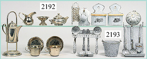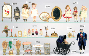 dollhouse sewing machine, tin, 7 cm, 1 dollhouse picture, small tin clock, lamp, basket