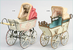 dollhouse doll, 13.5 cm, bisque shoulder headed doll, arm and legs, fabric body, old clothes and underwear, with 1 pram, colorwise retouched