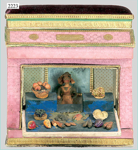 BOULE, dollhouse cupboard, with shelves top, 15 cm, filigree, lithographed, like motif house at forest