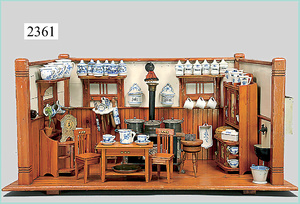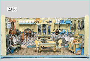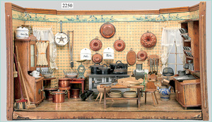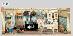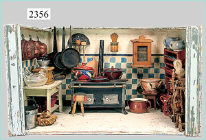 dollhouse kitchen, c. 1910, furnished, with stove, richly accessories