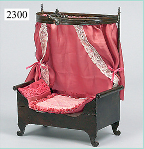dollhouse bed, 14.5 cm, with canopy, with a suitable chair, early