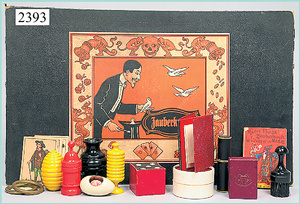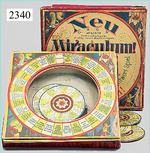 conjuring set, around 1900, without game guidance, probably as far as possible complete, original cover, side parts are missing